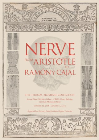 It can be such an exciting thing when art and science collide as they do in this fascinating exhibition at the medical school at Johns Hopkins University. Dr. Thomas Brushart, an orthopaedic hand surgeon, has for years collected rare books about the history of nerve science, from rare Renaissance-era printings of the classics to more modern editions with intriguing inscriptions and histories of ownership. Beautifully designed by Lisa Pupa (with exhibition texts edited and proofread by me), this exhibition is on view at the university’s William H. Welch Medical Library through January 31, 2019.